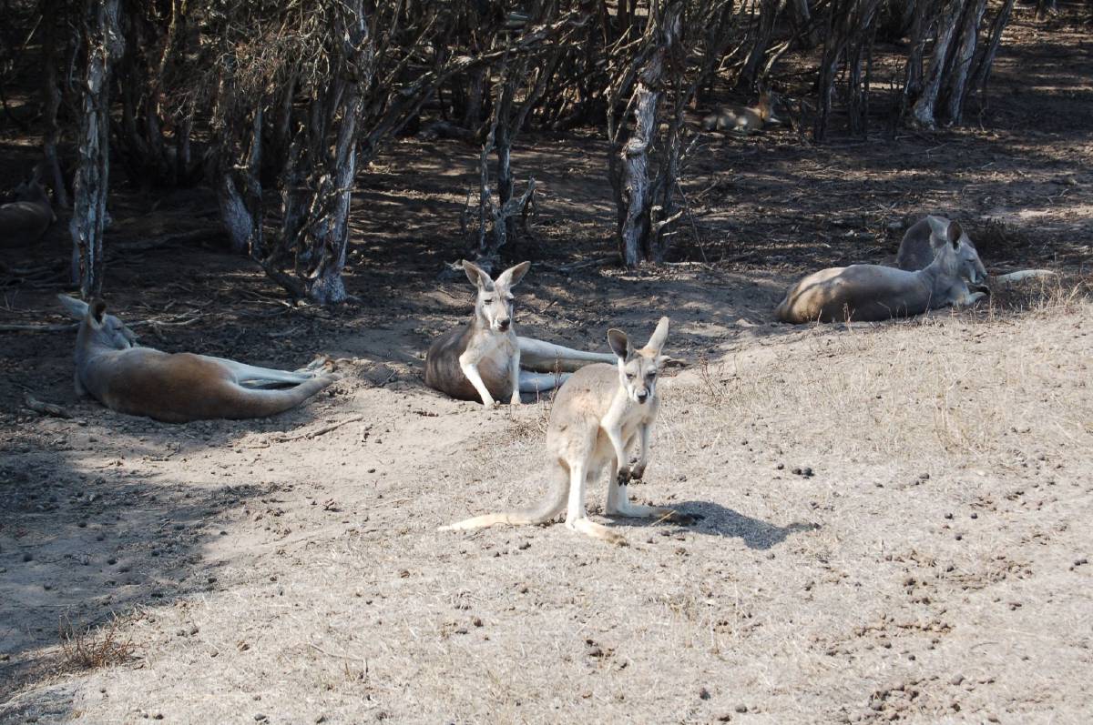 The most amazing part was walking down into the scrub where the kangaroos roam. It was approaching mid-day and pretty hot, so there was not a lot of activity. We spotted one checking us out. It seemed much more cautious than the wallabies that hop over to you without hesitation. The kangaroo in question scratched itself, made a couple of small, very slow steps in our direction, then Hop! Hop! Hop! There it was right in front of us. Pretty crazy! It ate gently from our hands as we stared in awe. After a while others perked up and came over to investigate. It was at times a little intimidating as they move pretty quickly and naturally will be territorial about food, but it was also quite awesome!