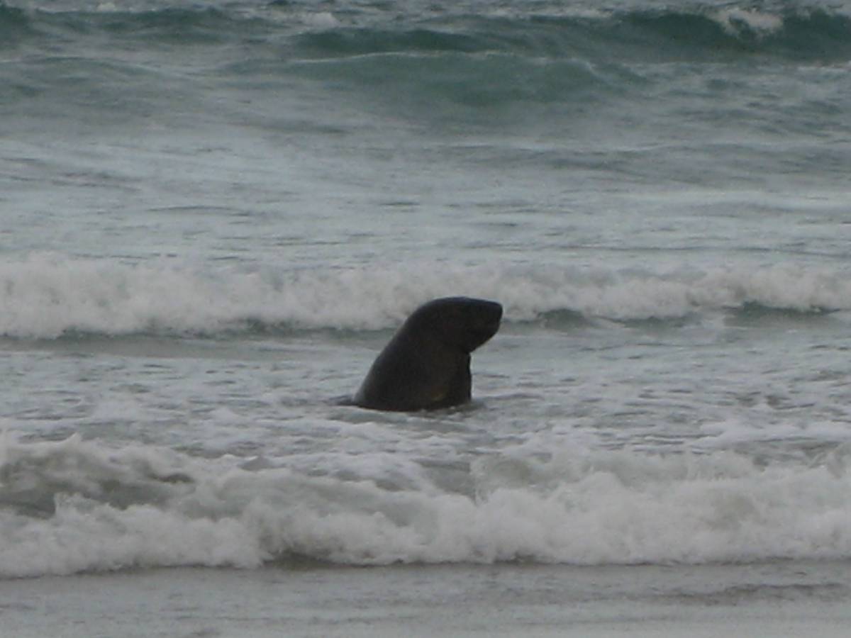 After hiking back up the windy headland, we ventured down the other side to a beach where we walked right up to a group of sleepy Hooker sea-lions. The Hooker sea-lion is the rarest of the world’s five species of sea-lions and are endemic to New Zealand. They are apparently making a comeback after being eliminated by Maori hunting centuries ago. Unlike the fur seals, these guys like company and are known to be gregarious. Our guide had studied the sea-lions for his masters degree and was very diligent about preventing any of us (like the two mischievous German boys) from getting too close. When asked what they would do, he said that they would most likely just run at you to see you run, but their bite can leave a nasty bruise. You might think you could just outrun one of these big, lazy looking guys, but think again! They can run up to 20kph. No worries mate! These guys were busy resting up for a night of prowling the ocean waters.